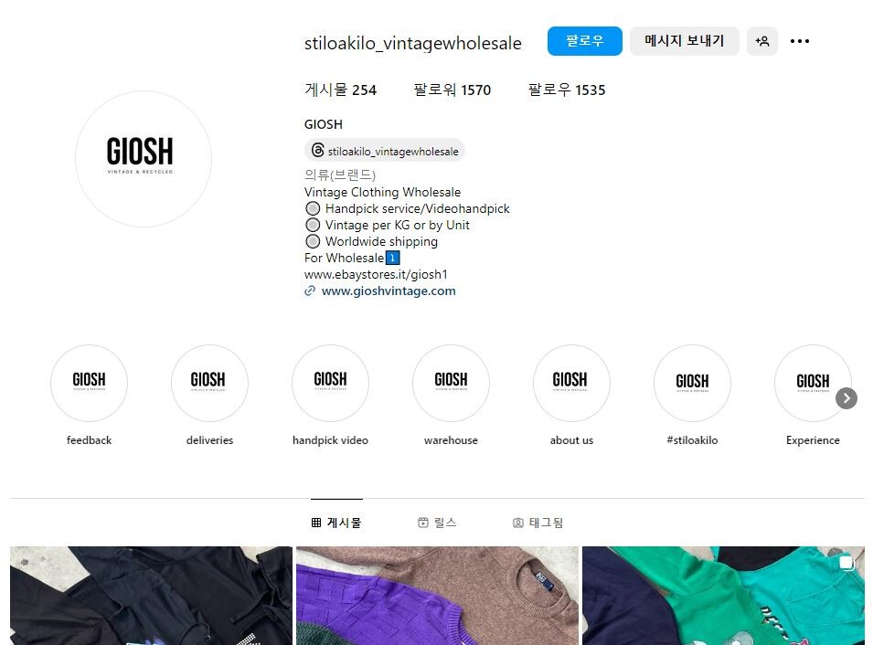 - 인스타그램 https://www.instagram.com/stiloakilo_vintagewholesale/- 인스타그램을 통해 물건스타일을 확인하실 수 있습니다.