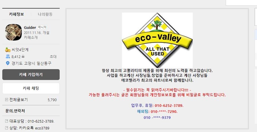 * 전화번호 : 010-6252-3789카카오톡 eco3789
